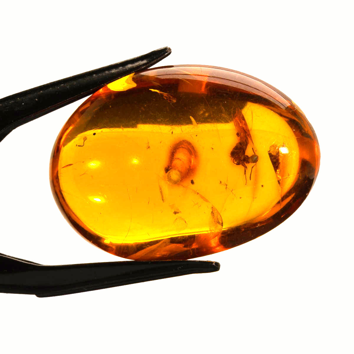 Klar baltisk bärnsten med innesluten insekt Hål borrat i mitten av bärnstenen