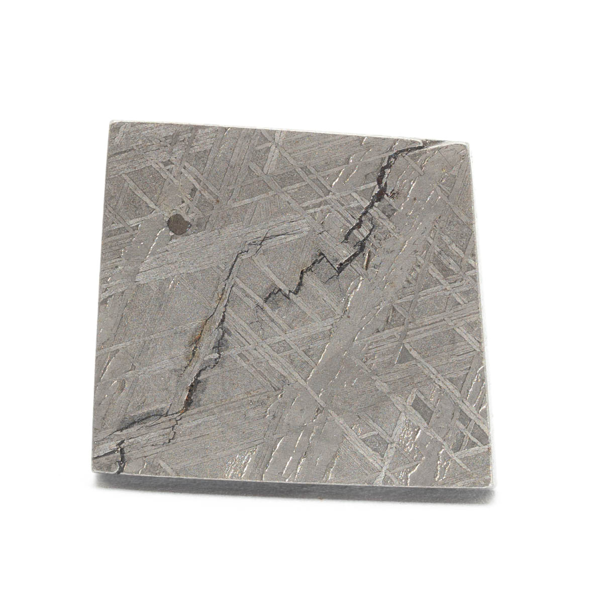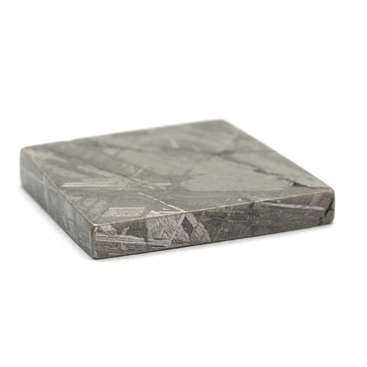Platta, sågad och etsad så att Widmanstätten-mönstret syns tydligt.