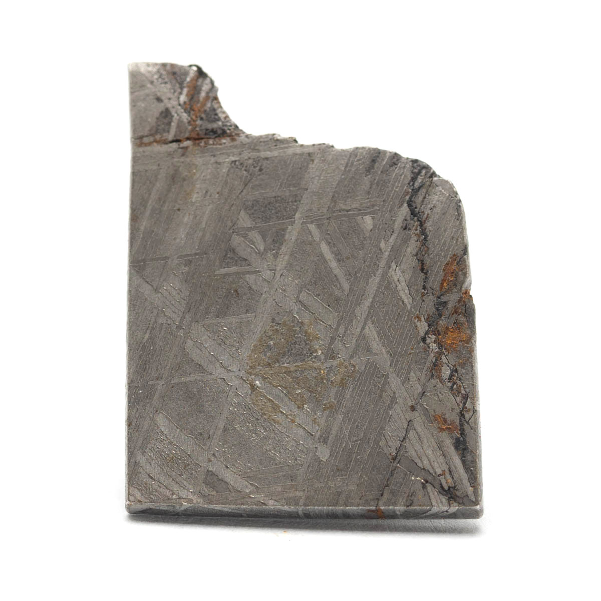 Platta, sågad och etsad så att Widmanstätten-mönstret syns tydligt.